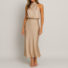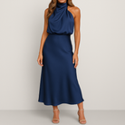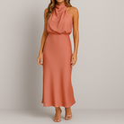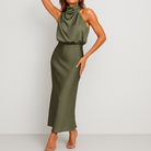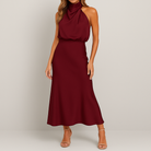 Damen Rückenfreies Midikleid | Hoher Kragen