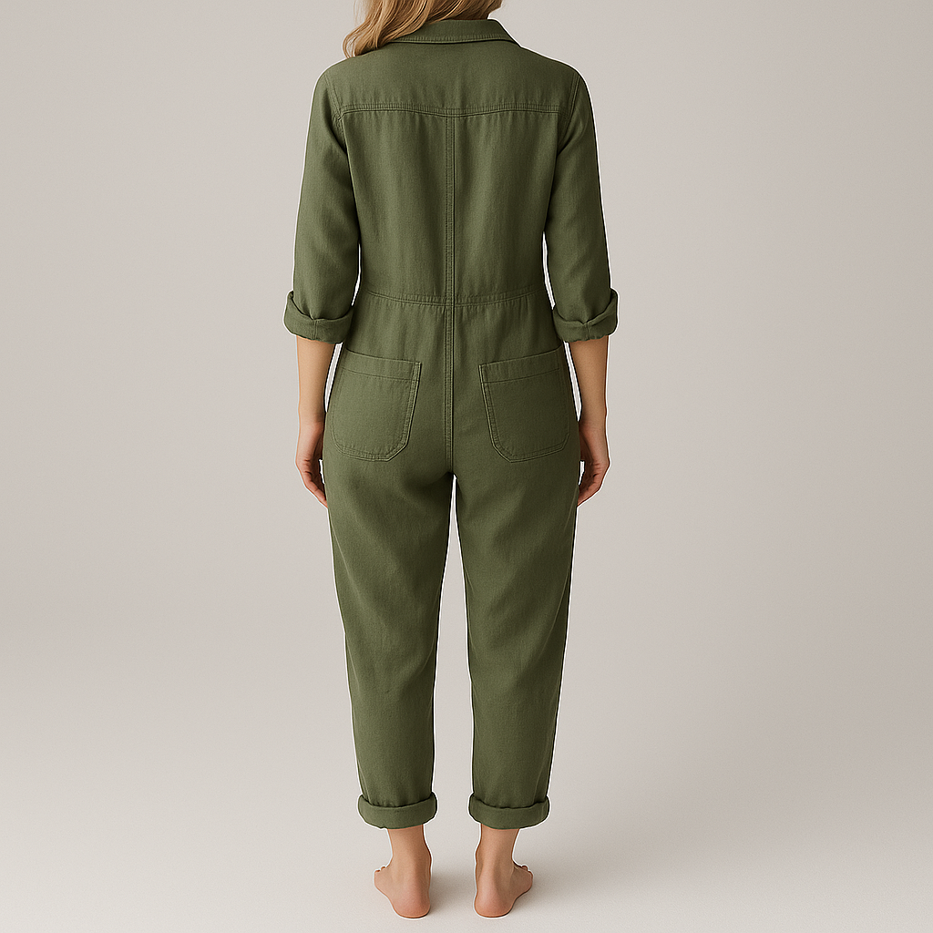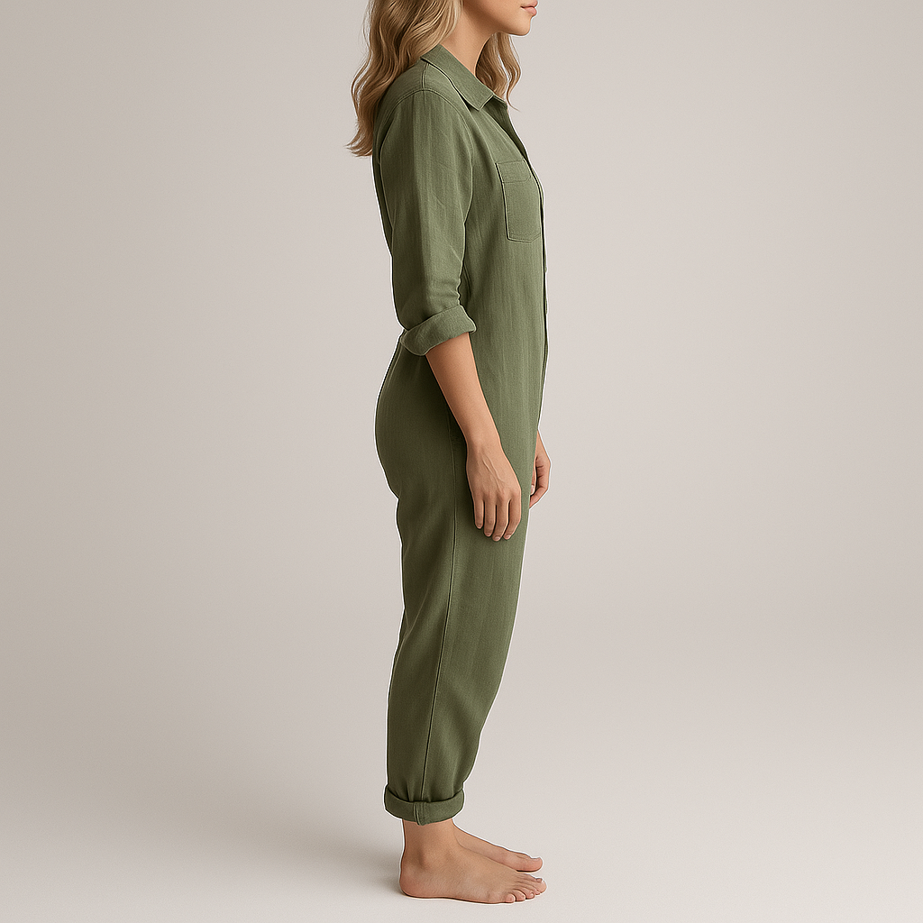 Damen Langarm Jumpsuit | Verdeckte Knopfleiste