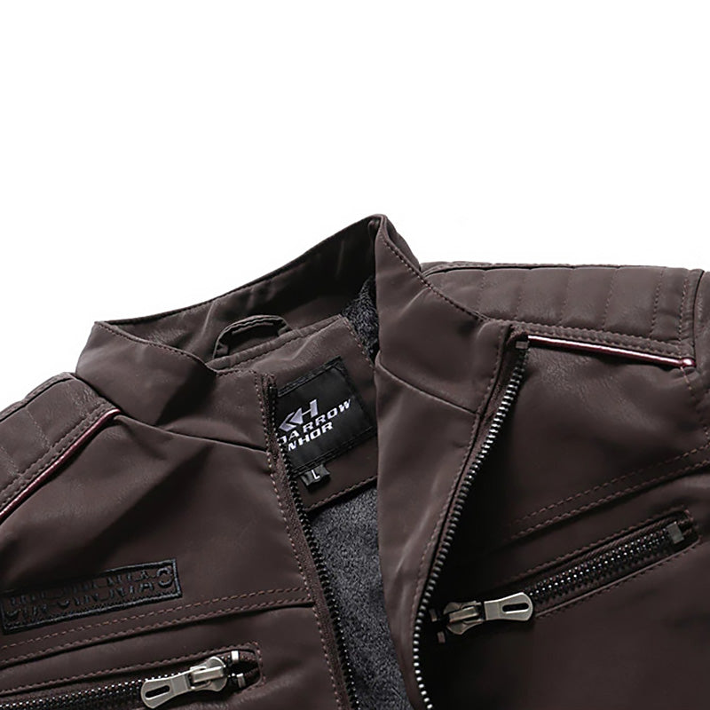Diese Herren Bikerjacke verbindet markantes Design mit funktionalen Details. Mit Reißverschlusstaschen und Stehkragen ausgestattet, bietet sie Schutz und Komfort für Fahrten, Freizeit oder urbane Outfits. Die robuste Verarbeitung macht sie zum verlässlichen Begleiter.