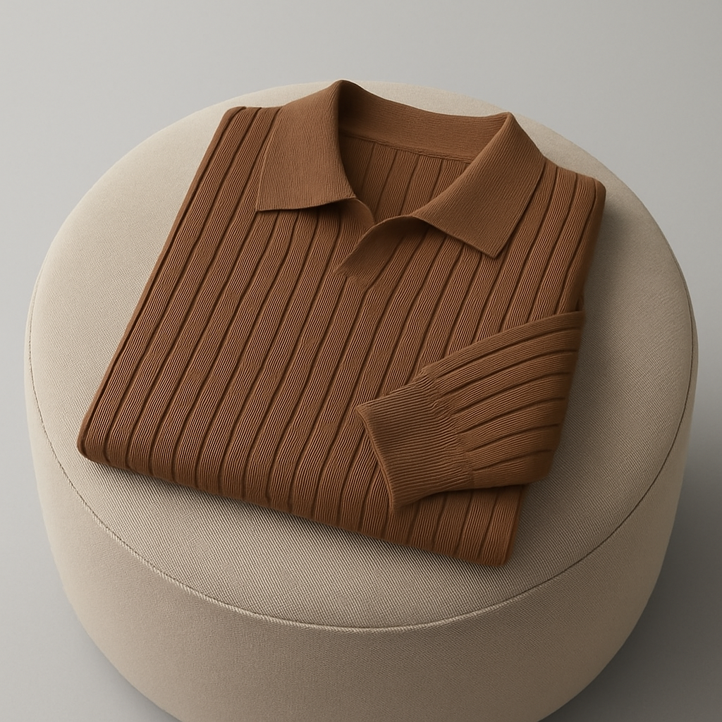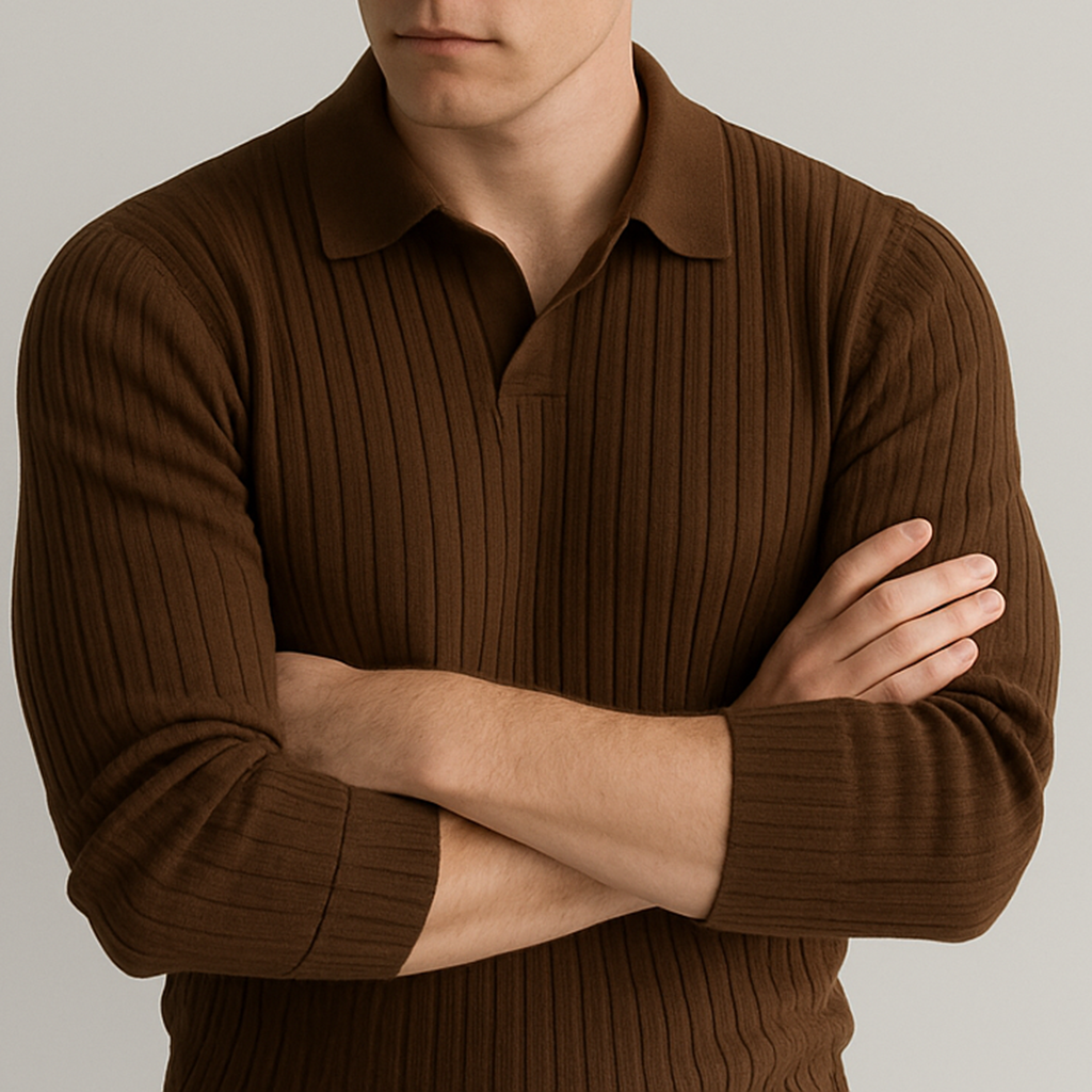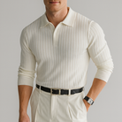 Herren Geripptes Polo Shirt | Langarm Kragenstil