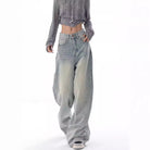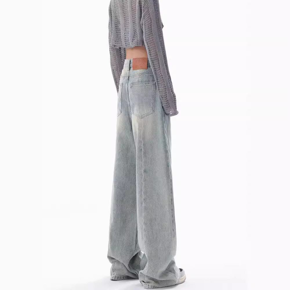 Diese Damen Baggy Jeans kombiniert hohen Bund mit weitem Schnitt für eine moderne Silhouette. Ideal für Freizeit, Alltag und Streetwear, sie sorgt für Komfort und Bewegungsfreiheit.