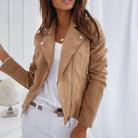 Die Bikerjacke setzt auf eine klassische Kurzform mit Reißverschlüssen und betonter Silhouette. Sie lässt sich vielseitig tragen – ob urban, casual oder als Kontrast zu femininen Outfits.
