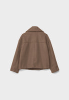 Dieser Kurzmantel vereint klassische Form mit moderner Leichtigkeit. Der doppelreihige Verschluss und der weite Reverskragen verleihen ihm eine elegante Silhouette – ideal für Büro, Stadt oder Freizeit.