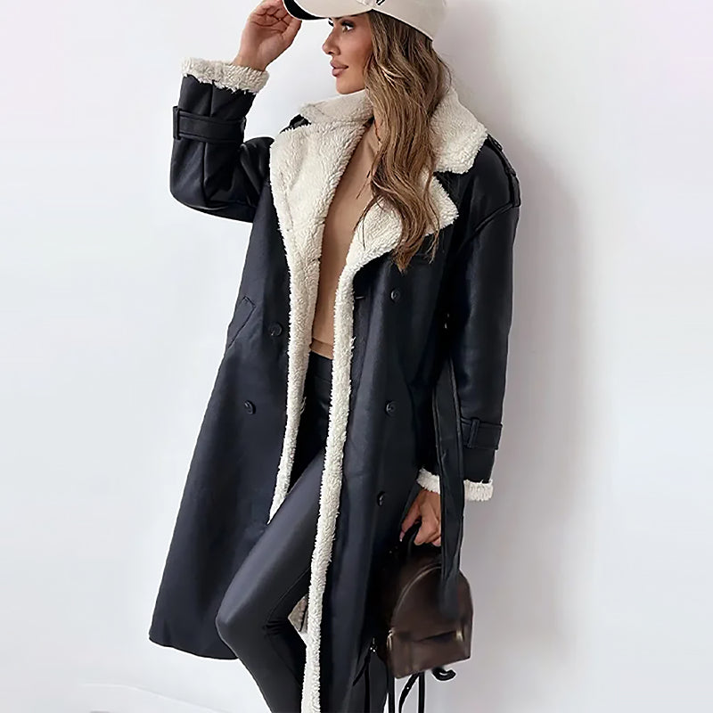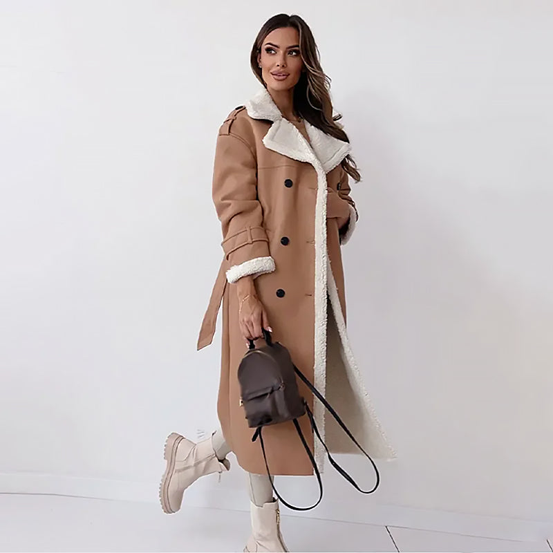 Dieser lange Damenmantel kombiniert funktionale Wärme mit einem klaren Design. Die gerade geschnittene Form sorgt für Bewegungsfreiheit, während das Innenfutter zusätzlichen Komfort bietet.