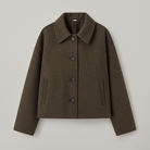 Diese Jacke bietet eine lockere, kastige Silhouette mit klassischer Knopfleiste. Der gerade Schnitt und der breite Kragen machen sie vielseitig kombinierbar im Alltag.