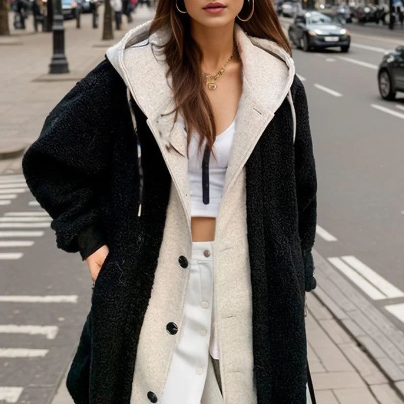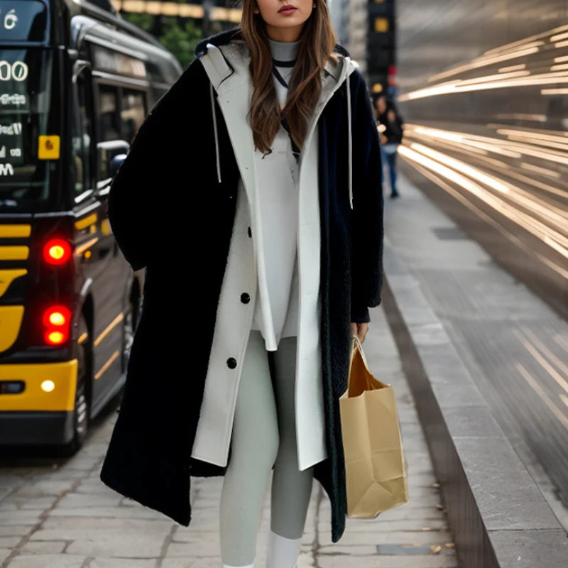 Damen Langer Mantel Mit Kapuze | Locker Geschnitten