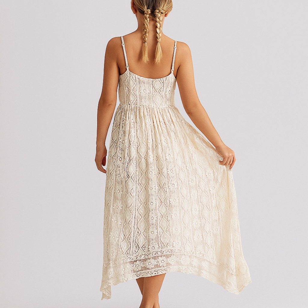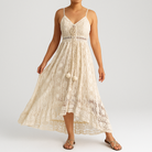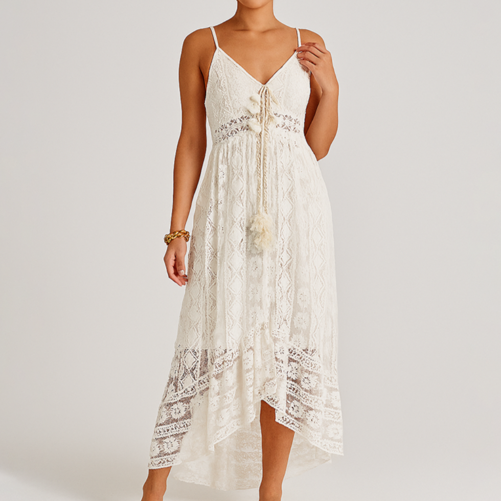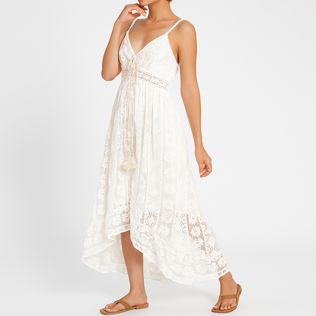 Damen Boho Maxikleid | Spitzensaum Akzent