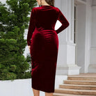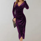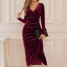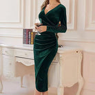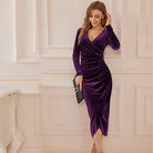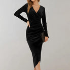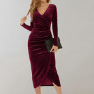 Damen Elegantes Midi Kleid | Langarm V-Ausschnitt
