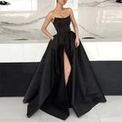 Dieses lange Damen Kleid ist eine stilvolle Wahl für Hochzeiten, Abschlussbälle und festliche Anlässe. Das trägerlose Design mit Schlitz verbindet moderne Abendmode mit einer klaren Silhouette und eignet sich ideal als festliches Kleid für Damen.