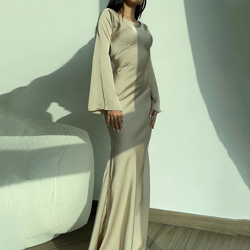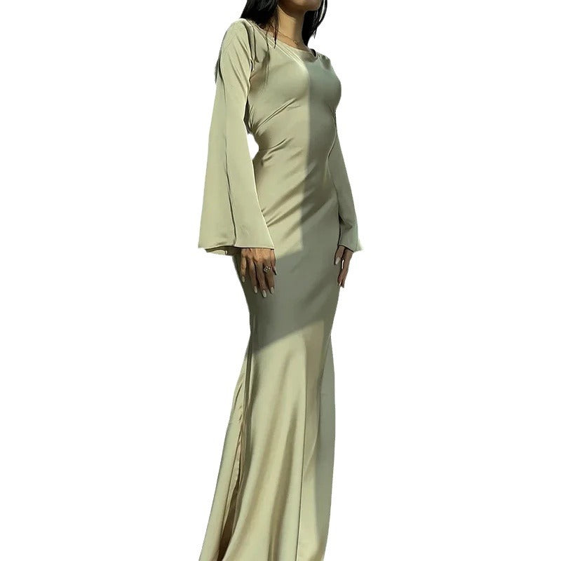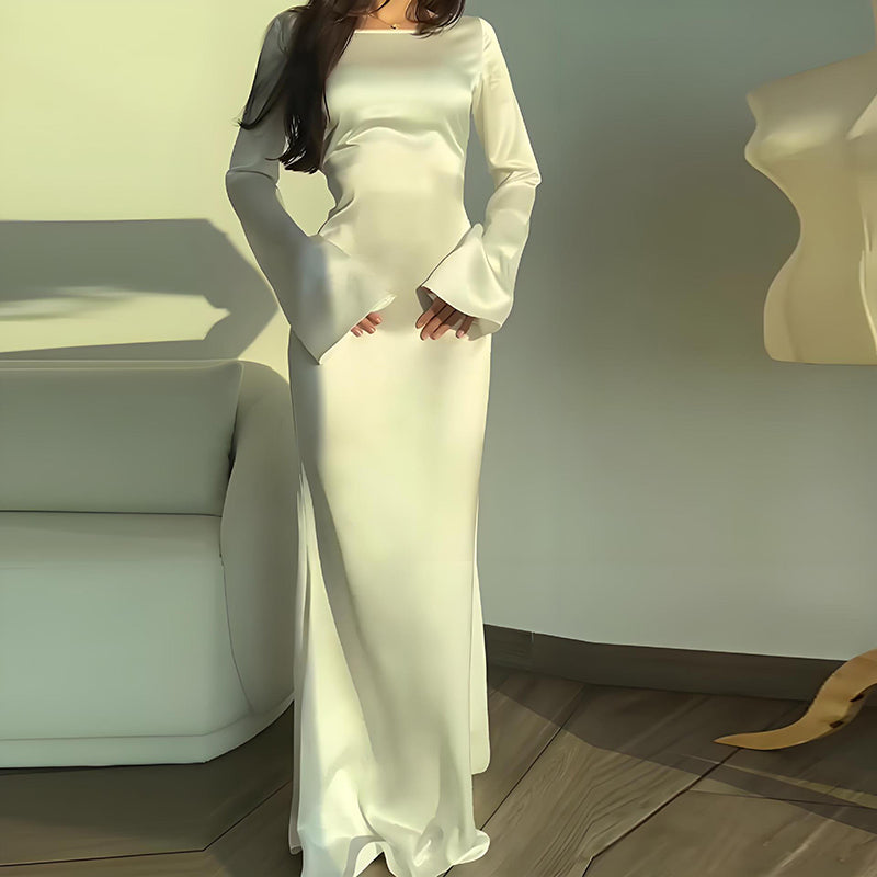 Dieses Damen Kleid in Maxi-Länge mit langen Ärmeln ist ideal für Hochzeitsgäste und festliche Veranstaltungen. Ob in Weiß, Schwarz oder anderen Farben – es sorgt für einen stilvollen Auftritt bei jedem Anlass.