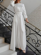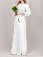 Dieses Damen Langarm Maxikleid überzeugt durch eine fließende A-Linien-Silhouette und dezente Details. Der geschwungene Ausschnitt lenkt den Blick auf Hals und Schultern, während die Maxilänge eine festliche Ausstrahlung verleiht. Ein vielseitiges Modell als festliches Kleid Damen, für Hochzeitsgäste oder als Standesamt Kleid.