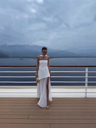 Damen Trägerloses Kleid | Asymmetrisches High-Low Kleid