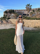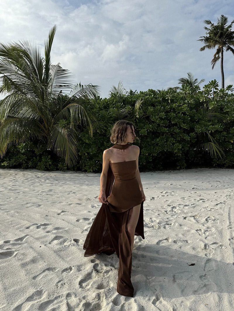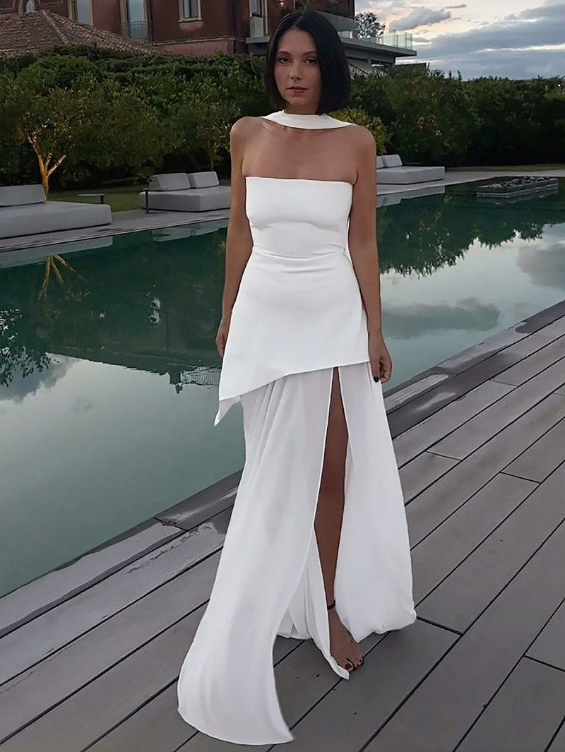 - Seitenschlitz: Verleiht dem Kleid einen markanten Akzent und Bewegungsfreiheit.