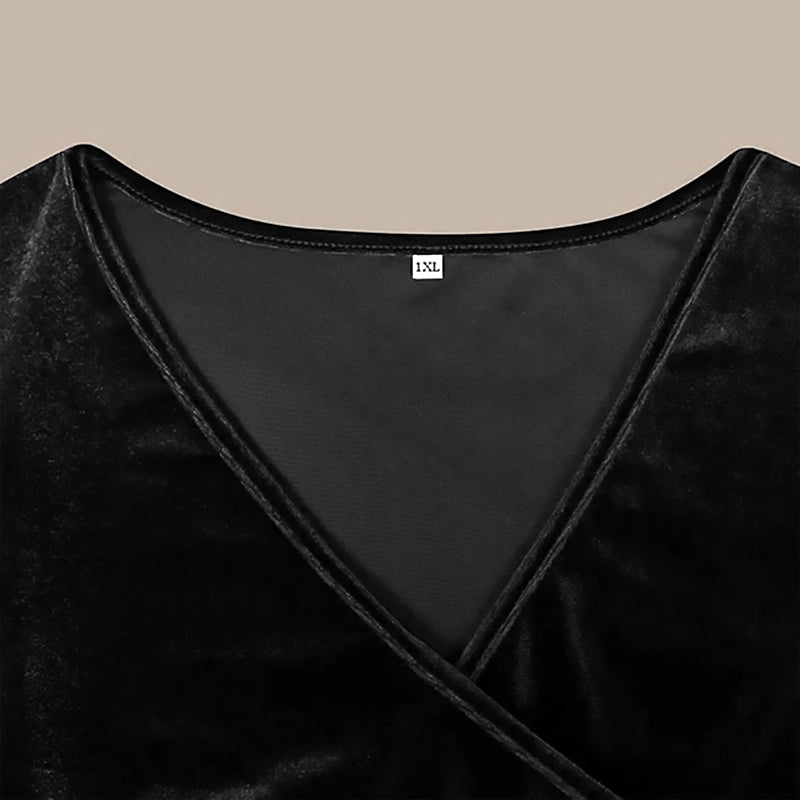 Damen Elegantes Midi Kleid | Langarm V-Ausschnitt