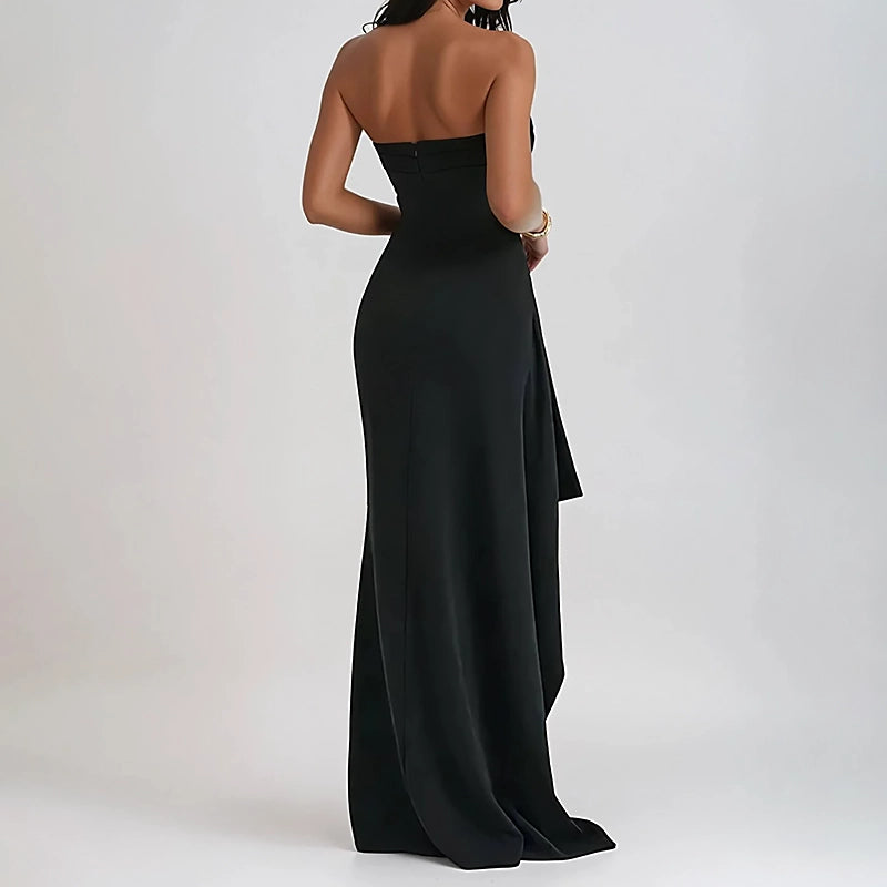 Damen Trägerloses Abendkleid | Langes Kleid Schlitz