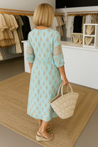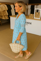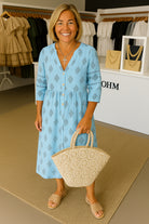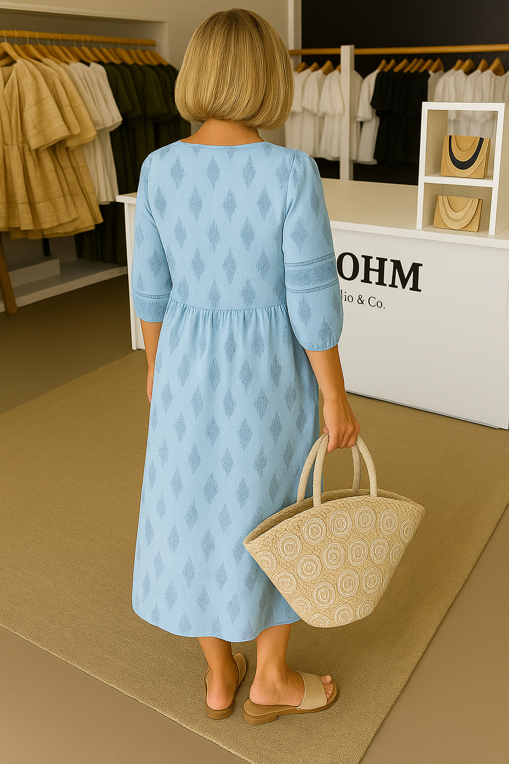 Dieses Modell verbindet funktionales Design mit einem vielseitigen Look für jede Jahreszeit. Der V-Ausschnitt und die bequeme Länge machen dieses Kleid zur praktischen Wahl für Freizeit oder Urlaub.