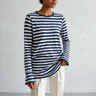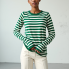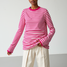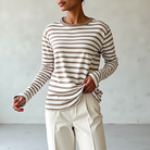Damen Gestreifter Rundhals Pullover | Locker Langarm