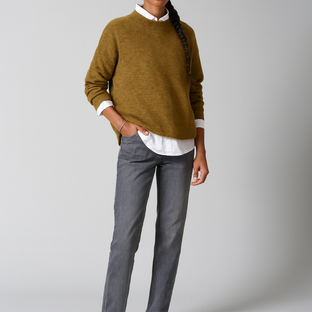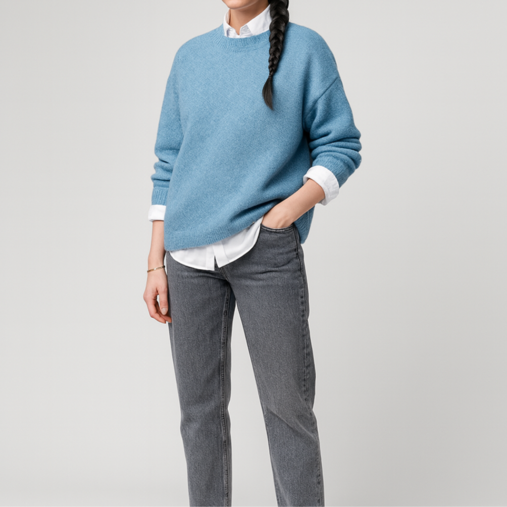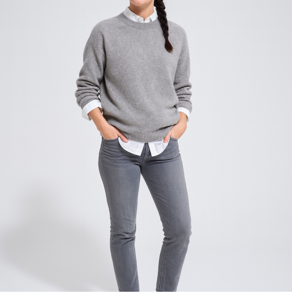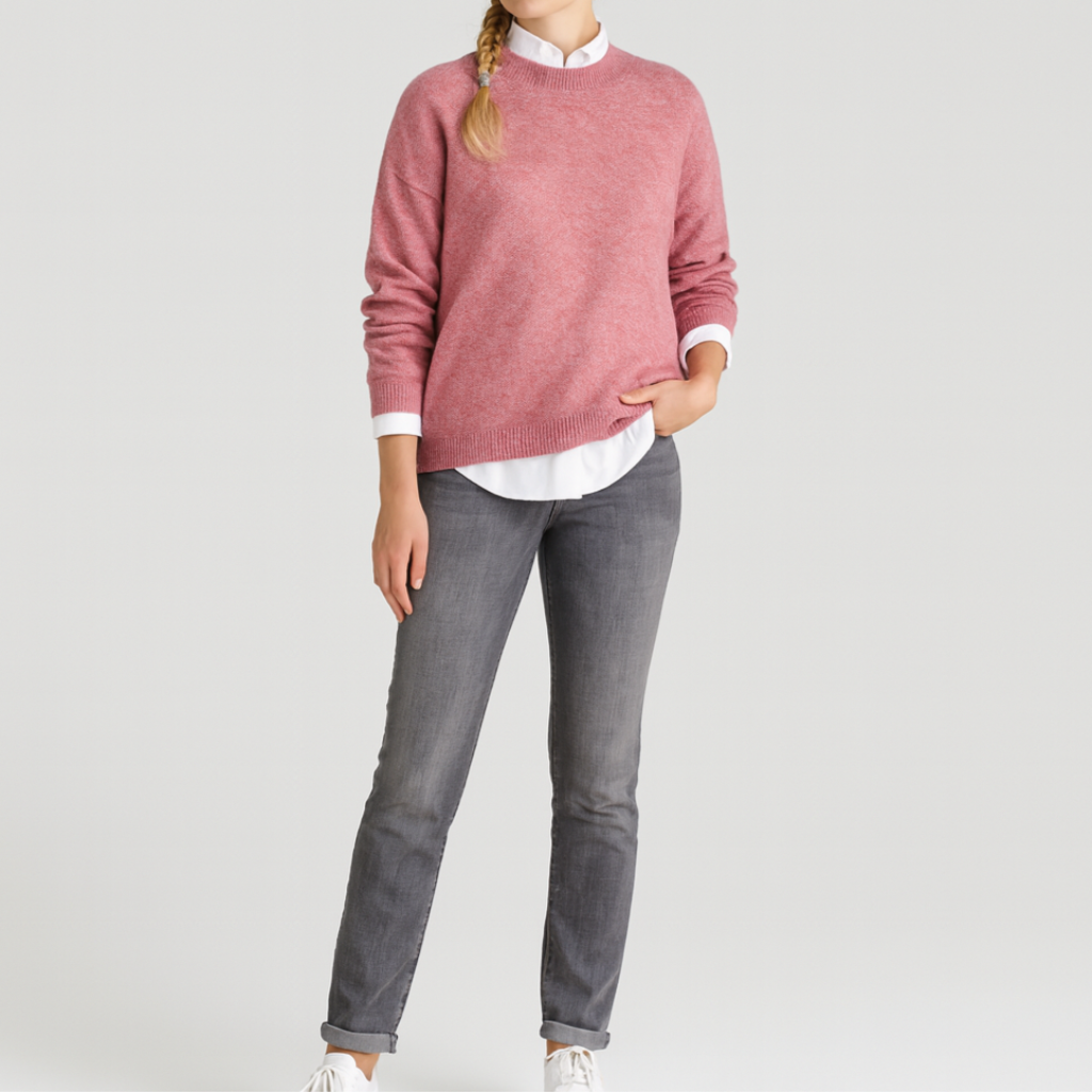 • Rundhalsausschnitt – vielseitig kombinierbar mit Hemden oder Tops.