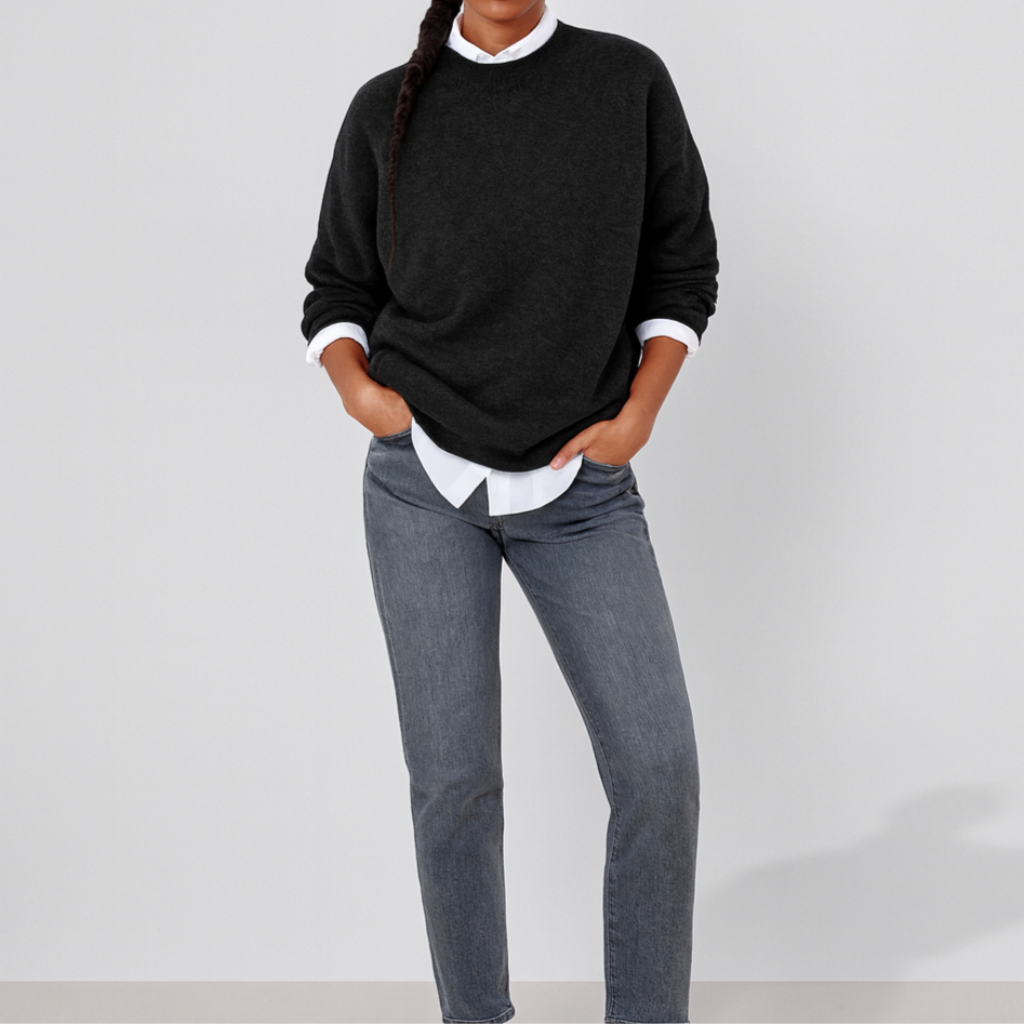 Damen Lockerer Strickpullover | Rundhalsausschnitt