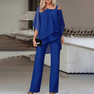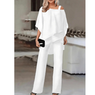 Das Set vereint ein schulterfreies Oberteil mit einer weit geschnittenen Hose zu einem abgestimmten Look. Ideal für besondere Anlässe oder stilvolle Abendmomente.