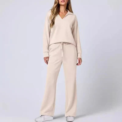 Damen Lockeres Freizeit Set | Reißverschluss Kragen