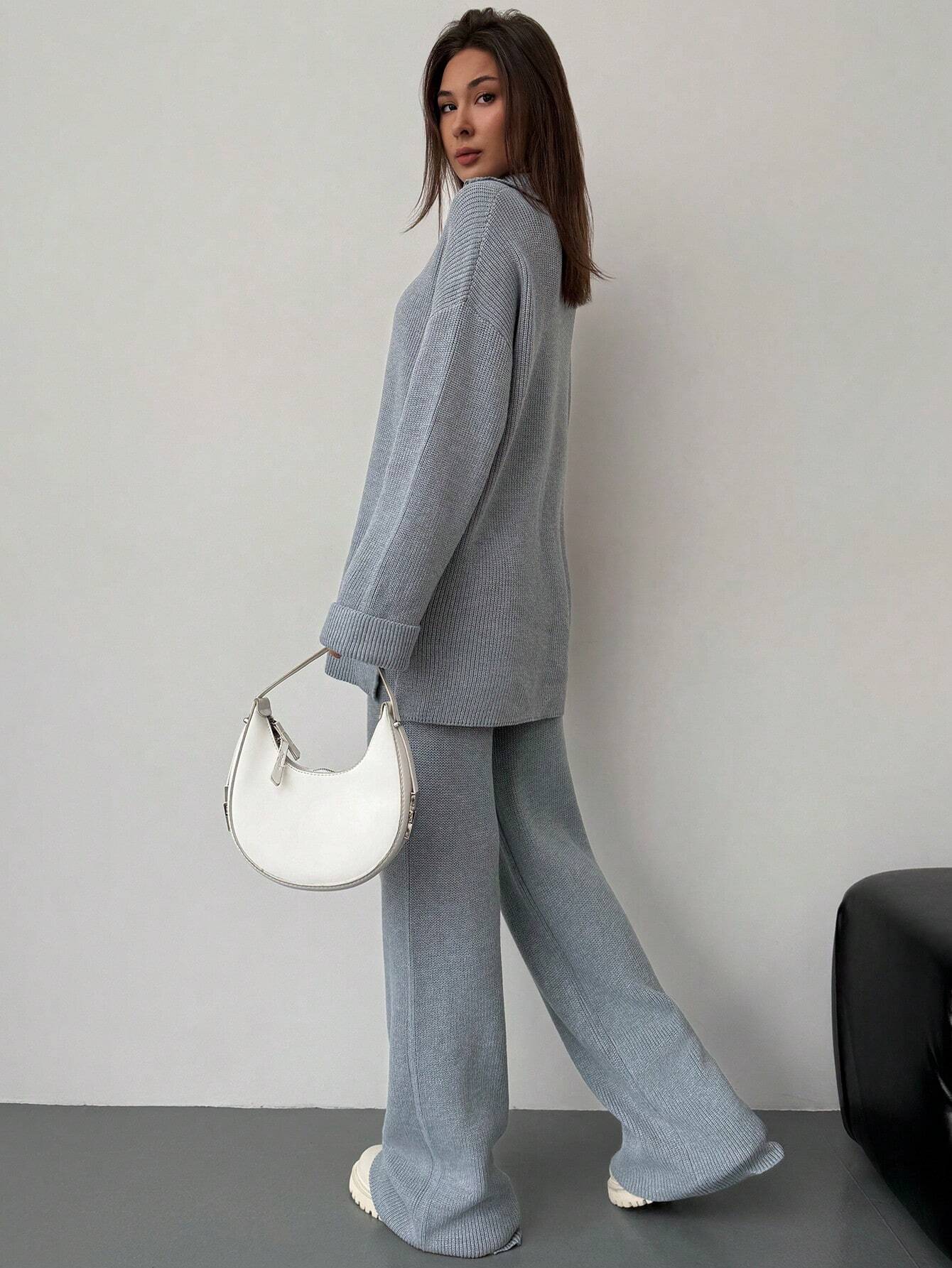 Zweiteiler Set | Damen Strick Zweiteiler Langarm | Lockerer Schnitt