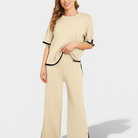 Das Fenja Set besteht aus einem locker geschnittenen Oberteil und einer weit fallenden Hose. Ideal für entspannte Stunden zu Hause oder stilvolle Freizeitlooks.