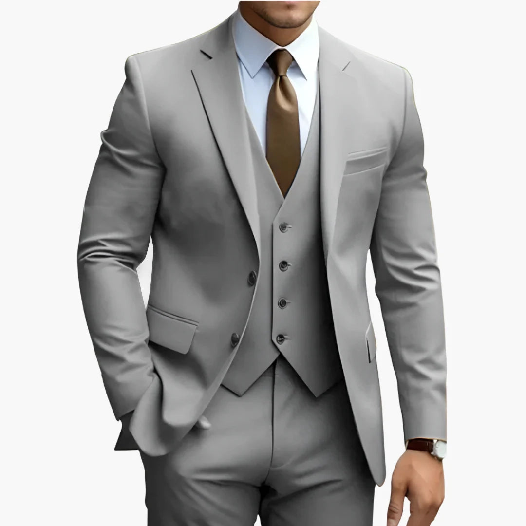 • Dreiteiliges Set mit Blazer, Weste und Hose für komplette Outfits.