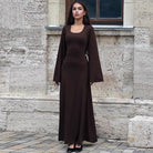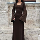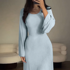 Dieses Damen Abendkleid mit langen Ärmeln und bodenlangem Schnitt überzeugt durch ein schlichtes Design mit drapiertem Rückendetail. Ideal für Hochzeiten, Abendveranstaltungen und festliche Anlässe.