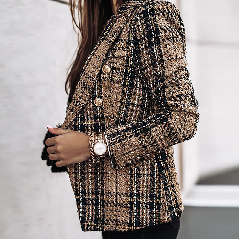 Damen Karierter Blazer | Doppelte Knopfleiste