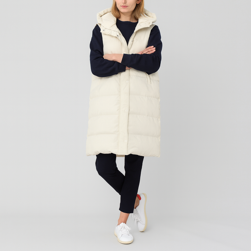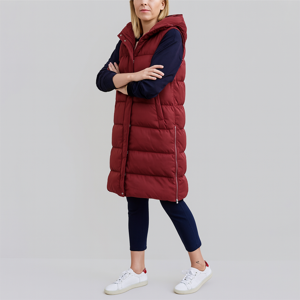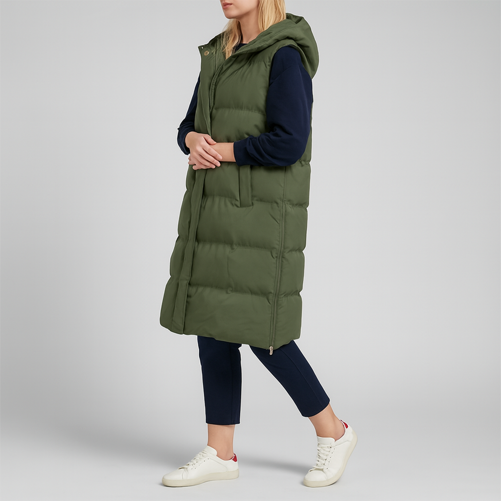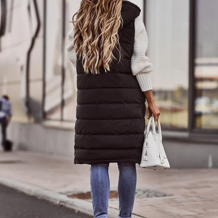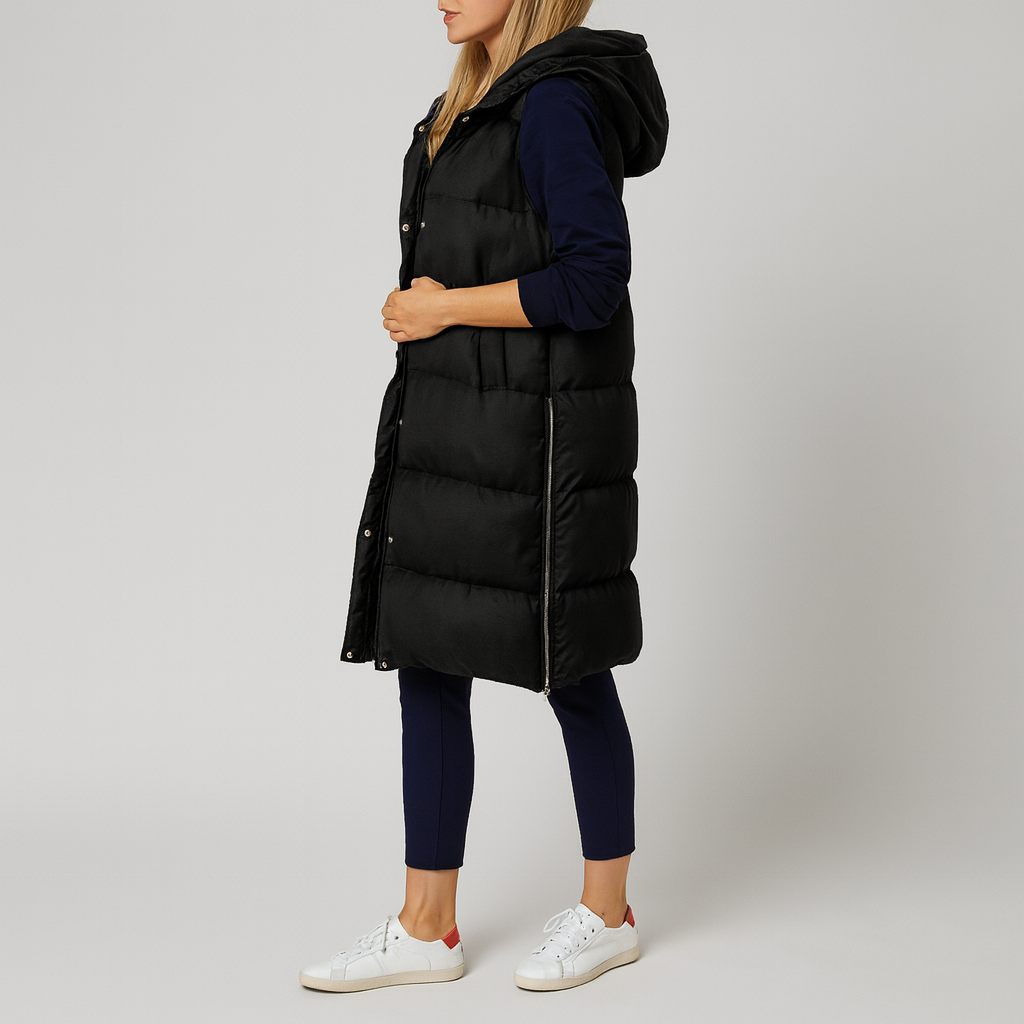 Damen Lange Steppweste Mit Kapuze | Ärmellos