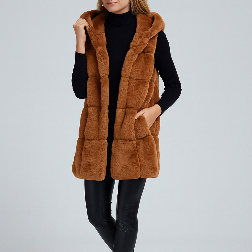 Damen Lange Weste Mit Kapuze | Lockerer Schnitt